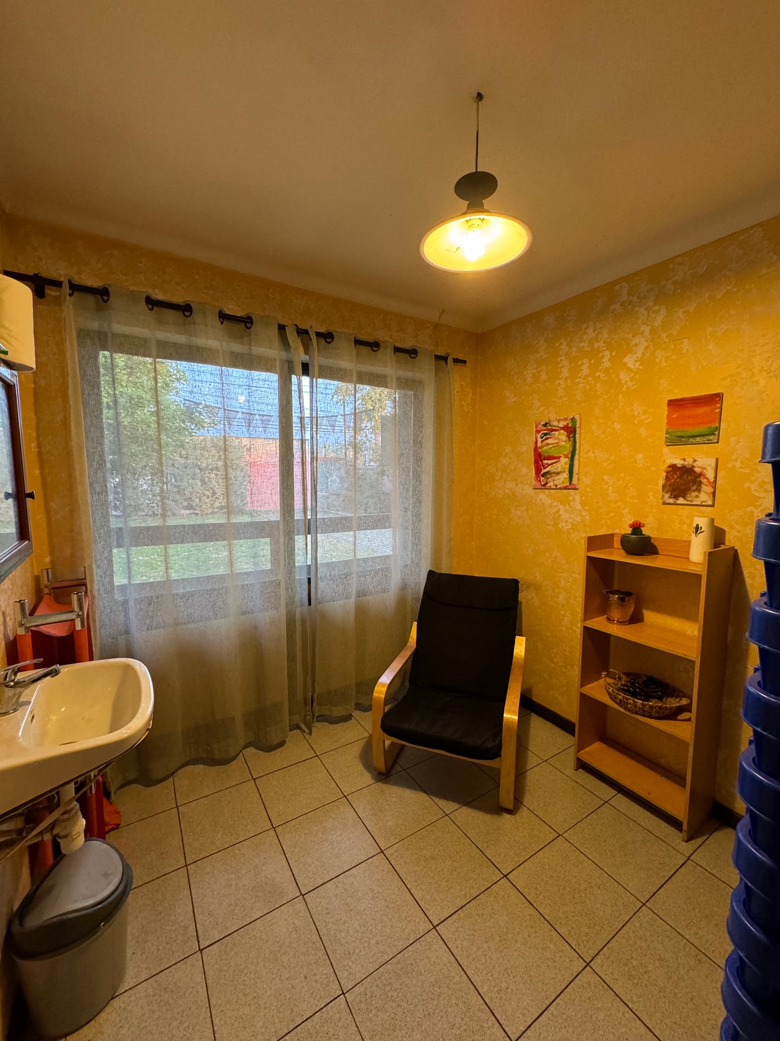 Nuestro patio, es un espacio de intercambios de emociones, imaginación y juegos. Es un ambiente que habla por sí solo. Este espacio ofrece 1.400 mts 2 de áreas verdes, arboles frutales, huerto y gallinero.